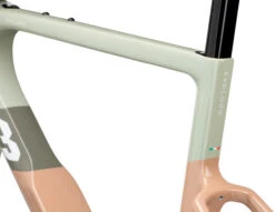 Das Exploro RaceMax Rahmenkit von 3T ist die Basis für ein Gravel-Bike aus Carbon. Je nach Ausstattung kannst Du Dir ein schnelles All-Road-Bike oder eine Gravel-Maschine mit richtig breiten Reifen aufbauen. Der aerodynamische Rahmen, verfügt über ein besonders starkes Unterrohr und ein sehr schmales Steuerrohr. In diesem Steuerrohr befindet sich jedoch ein 1,5″ starker Gabelschaft, der dem Bike Laufruhe und Stabilität verleiht. Wichtig ist außerdem genügend Reifenfreiheit. An der Gabel wird sie unter anderem durch eine minimalistische Gabelkrone realisiert. Der Rahmen selbst hat beidseitig abgesenkte Kettenstreben, wodurch auch dort eine größere Reifenfreiheit realisiert werden kann.