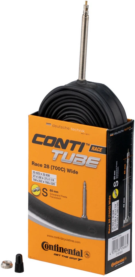 Bezeichnungen/Synonyme: Sclaverand-Ventil (SV), Französisches Ventil, Presta-VentilAußendurchmesser: 6,5 mmSonstiges: Bei allen Continental-Schläuchen mit SV-Ventil ist das Ventil abschraubbar (Ventilverlängerung, Befüllen mit Antiplatt-Mitteln etc.).Lieferumfang:1 x Schlauch Continental Race 28 Wide