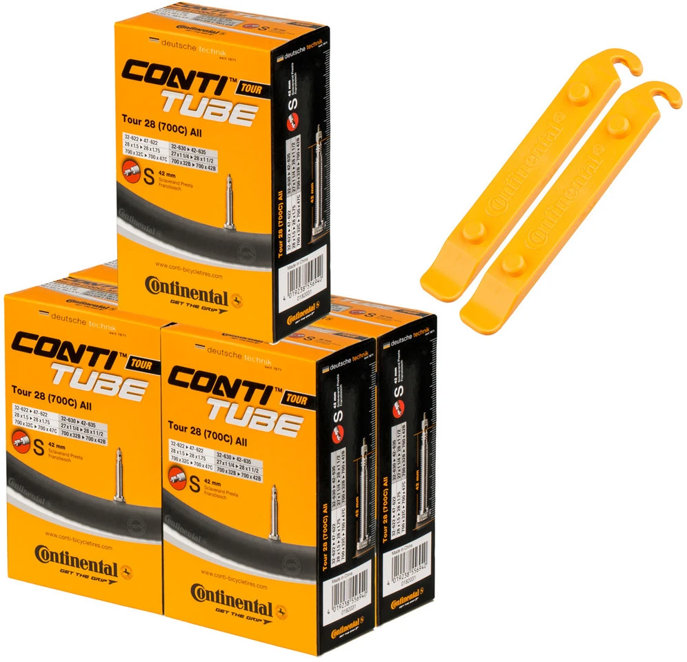 Bezeichnungen/Synonyme: Sclaverand-Ventil (SV), Französisches Ventil, Presta-VentilAußendurchmesser: 6,5mmSonstiges: Bei allen Continental-Schläuchen mit SV-Ventil ist das Ventil abschraubbar (Ventilverlängerung, Befüllen mit Antiplatt-Mitteln etc.).Lieferumfang:5 x Schlauch Continental Tour 28 All2 x Reifenheber Continental MTB/Tour
