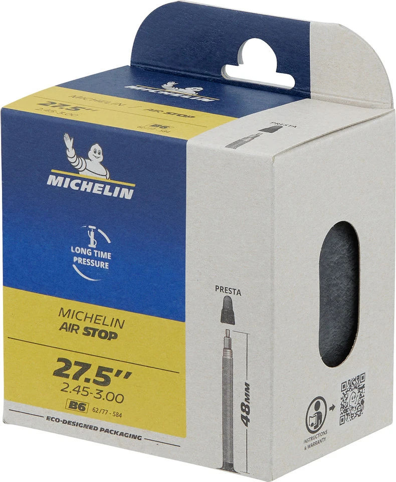 Ventilart:SV (Sclaverand-/Presta-Ventil)Ventillänge:48 mmHerstellernummer:716374Lieferumfang:1 x Schlauch Michelin B6 Airstop für 27,5+