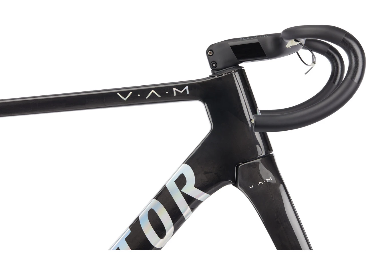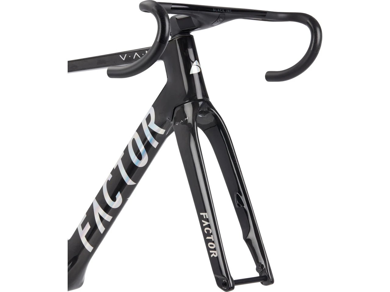 Das OSTRO V.A.M. Rahmenkit von Factor bietet Dir die Möglichkeit, ein super leichtes aerodynamisches Rennrad aus Carbon aufzubauen. Sowohl Gabel als auch Rahmen und Sattelstütze wurden windschnittig optimiert. Das leichtgewichtige Rahmenkit besticht durch herausragende Steifigkeit. Erzielt wird dies durch den Einsatz von TeXtreme-Carbonfasern. TeXtreme besteht aus sehr flachen Fasern, die breit verlegbar sind, wodurch der Materialeinsatz sehr gering ist. Gestützt werden diese Fasern durch pechbasierte Carbonfasern. Die Reifenfreiheit des Rahmens beträgt 32 mm. Die eigens konzipierte Gabel nimmt ebenfalls bis zu 32 mm breite Reifen auf. Du kannst also bedenkenlos breite Reifen aufziehen, um beispielsweise mehr Fahrkomfort zu erzielen. Ausgerüstet mit High-End-Steuersatz und -Innenlager von CeramicSpeed hast Du minimale Reibungsverluste während der Fahrt. Dank der windschnittigen Lenker-Vorbau-Einheit von Black Inc macht das Rahmenkit seinem Namen – OSTRO ist einer der mediterranen Hauptwinde – alle Ehre. Lenkerband und eine Halterung für Deinen Trainingscomputer sind ebenfalls inklusive.