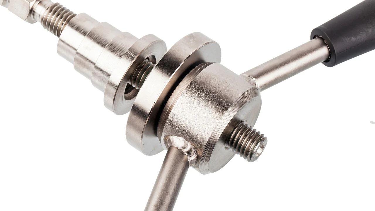 Außerdem dient es dazu, Patronenlager oder Lagerschalen in gewindelose Tretlagergehäuse einzupressen und Tretlagerschlüssel bei Demontage oder Montage der festen (rechten) Lagerschale vor dem Abrutschen zu sichern. Ein Schnellauslöser ermöglicht einen schnellen Einsatz des Werkzeugs, extralange (30 cm) Handgriffe bieten einen guten Hebel und abgestufte Einsätze sorgen für die exakte Ausrichtung der Lagerschalen.