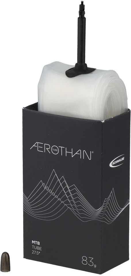 Der Aerothan Schlauch von Schwalbe fĂĽr 27,5″ und 27,5+ Mountainbike-Reifen kombiniert optimale Pannensicherheit, niedriges Gewicht und minimalen Rollwiderstand. Selbst bei niedrigem Luftdruck behält er seine Form und das robuste Material verhindert Snakebites und Seitenwandschäden.