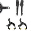 Diese Ultegra Di2 R8150 Road Komplettgruppe von Shimano besteht aus einer 2×12-fach-Kurbel mit 34-50-Zähne-Abstufung, einem Felgenbremsenset und einem elektronischen Schaltwerk sowie Umwerfer. Natürlich sind auch ein Akku, eine Quick-Link-Kette und eine Kassette mit 11-30 oder 11-34 Zähnen mit dabei.