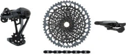 Dieses SRAM Upgrade-Kit der Serie GX Eagle für 1×12-fach-Antriebe hat die passende Kassette direkt dabei. Es setzt sich zusammen aus dem neuesten GX Eagle Schaltwerk, passendem GX Eagle Trigger Schaltgriff, einer XG-1275 Kassette sowie einer PC XX1 Eagle oder PC GX Eagle Kette.