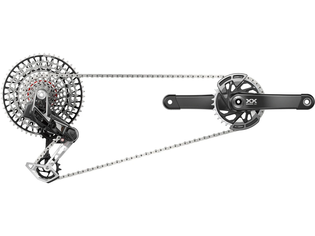 1 x Kurbelgarnitur SRAM XX Eagle Transmission AXS1 x Kettenblatt SRAM XX Eagle Transmission1 x Kassette SRAM XS-12971 x Schaltwerk SRAM XX Eagle Transmission AXS1 x Akku SRAM eTap / AXS1 x Controller SRAM AXS Ultimate mit Batterie CR20321 x Kette SRAM XX Eagle Transmission1 x Kettenschloss SRAM PowerLock T-Type1 x Akkuladegerät SRAM