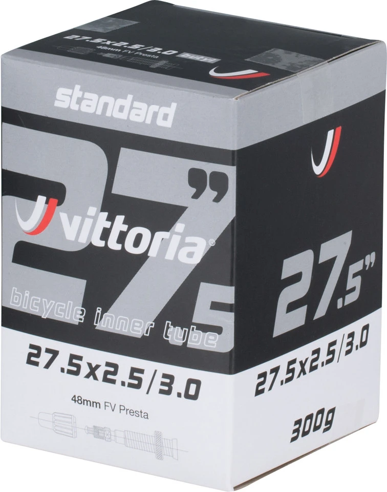 Bezeichnungen/Synonyme: Sclaverand-Ventil (SV), Französisches Ventil, Presta-VentilAuĂźendurchmesser: 6,5 mmLieferumfang:1 x Schlauch Vittoria Standard 27,5″