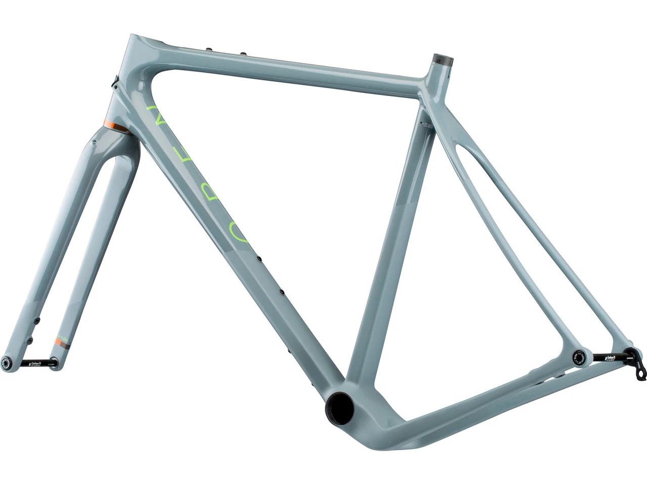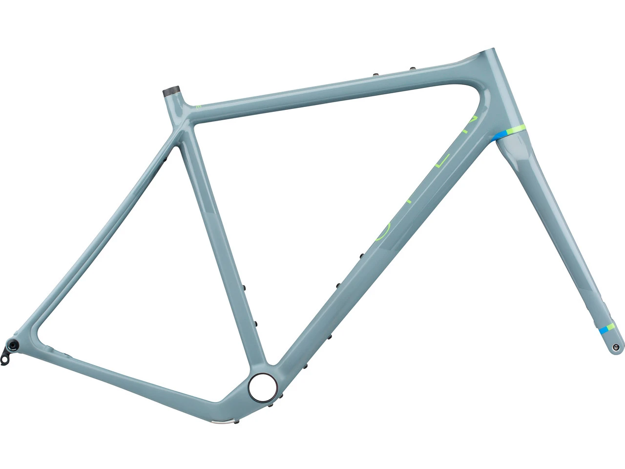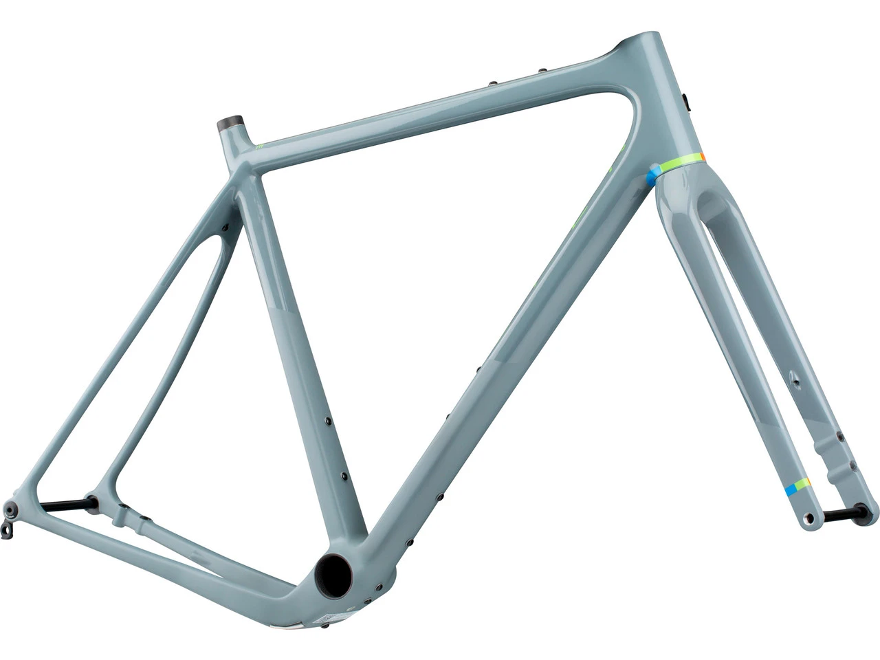 Spezifikationen:Einsatzbereich:GravelLaufradgröße:27,5″ (650B), 28″Rahmengrößen:XS, S, M, L, XLMaterial Rahmen:CarbonMaterial Gabel:CarbonTechnische Daten Rahmen:Einbaubreite Hinterrad:142 mmAchsstandard:12 mm SteckachseSattelstütze (Ø):27,2 mmSteuersatz:IS42/28.6 – IS52/40 (integriert)Innenlagerstandard:BB386 EvoGehäusebreite:86 mmBremsaufnahme:Flat MountUmwerferaufnahme:Umwerferbefestigung nicht möglichZugverlegung:intern mechanisch / elektrischFlaschenhalteraufnahmen:4Technische Daten Gabel:Gabelschaft:1 1/8″ – 1,5″ taperedAchssystem:12 x 100 mm SteckachseBremsaufnahme:Flat MountVorlauf:50 mmEinbauhöhe:395 mmMaterial Gabelschaft:CarbonMaterial Gabelbeine:CarbonFreigaben:Bremsscheibengröße:nur 160 mmReifengröße max.:27,5 x 2,4″ , 46-622 (700x46C)Kettenblattanzahl:1-fachKettenblattgröße:1-fach 46 Z, 1-fach 42 Z (SRAM)Features:Fahrradrahmen und Gabel aus leichtem Carbon für Gravelbikes mit breiten Reifendoppelt abgesenkte Kettenstreben für bis zu 2,4 Zoll Reifenfreiheitkomplette Kabelverlegung internvier Befestigungsmöglichkeiten für Flaschenhalter und mehrflexibel in der LaufradgrößeGeometrie:XS: